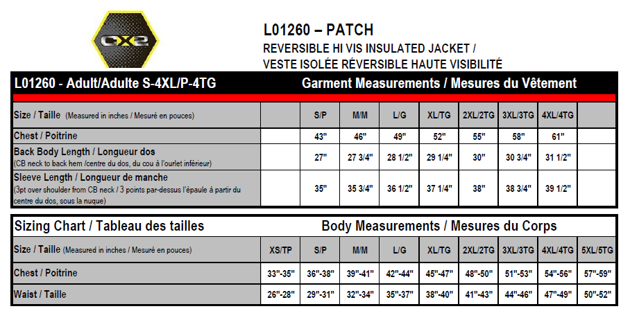 195 gsm – 5.8 oz./yd2 – 9.5 oz./lin. yd 100% polyester mechanical stretch oxford 2000 mm waterproof rating, 800 gsm breathability rating, wind resistant and water repellent finish. Insulation: 80gsm 100% polyester. Taped seams for rainwear purposes. YKK reversible front plastic zipper and two lower reverse coil pocket zippers. 4” hi-vis contrast band with 2” reflective tape on front and back body and sleeves. Meets CSA standards. Reverse the garment to 100% polyester water repellant taffeta. Two lower reverse coil zipper pockets. Lightly insulated for transitional purposes. Elastic binding at cuff and hem for fine finishing details. Embroidery zipper access.