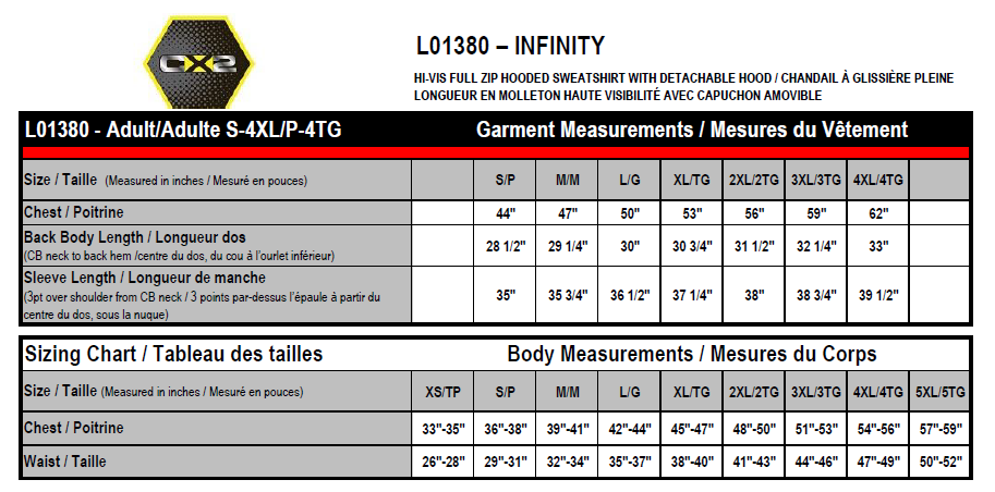 300 gsm – 8.9 oz./yd² – 14.7 oz./lin. yd 100% polyester one side brushed fleece with anti-pill, wicking, anti-bacterial and abrasion resistant finishes. Detachable hood with snaps and adjustable drawcord. Kangaroo pocket with concealed pocket. 4” contrast hi-vis tape with 2” reflective tape on front and back body and sleeves. Meets CSA standards.